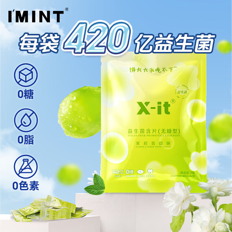 包邮 I'MINT 无糖口腔益生菌含片 7g Xit 小飞碟除口腔异味口香糖 茉莉青提味